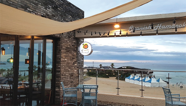 가장 제주다운 뷰를 가진 레스토랑 금융업에 종사하다가 제2의 인생을 위해 남편과 제주에 온 심 대표는 게스트하우스 운영 중 좀 더 제주다우면서도 특별한 것을 연구하기 시작했다. “스페니쉬함덕의 콘셉트는 ‘가장 제주다운 뷰를 가진 레스토랑’입니다. 이를 위해 뷰가 아름답기로 소문난 함덕 해수욕장 정 가운데에 매장을 열었습니다. 그리고 저희는 1층이 아닌 3층에 위치해있습니다. 1층이 아닌 고층을 고집한 이유는 뷰를 위해서입니다. 오션뷰를 보면서 식사하는 호사를 제주 여행객들에게 제공하고 싶은 마음이 컸기 때문입니다. 호텔을 이용하지는 못하지만 호텔 수준의 오션뷰와 음식을 접하고 싶은 분들을 위한 레스토랑이 바로 스페니쉬함덕입니다.” 심숙진 대표는 사업을 시작하기 전에 여러 지역을 돌아다니면서 이국적인 음식을 많이 접했다. 그중에서 그의 구미를 당긴 것이 스페인 음식이었다. 스페인 음식은 이국적이면서도 기본적으로 쌀 요리라 우리나라랑 잘 맞는 음식이었다. 이에 그는 제주도에 스페인 레스토랑을 차리는 것은 충분히 해볼 만한 도전이라는 생각이 들어 스페니쉬함덕을 오픈하게 됐다. 오션뷰는 낮과 밤에도 빛나서 샹그리아 한 잔과 감바스 및 하몽, 빠에야 등 스페인 요리를 곁들이면 바다의 풍경과 스페니쉬함덕의 맛에 기분좋게 가벼이 취하거나 편안한 휴식이 되기도 한다.